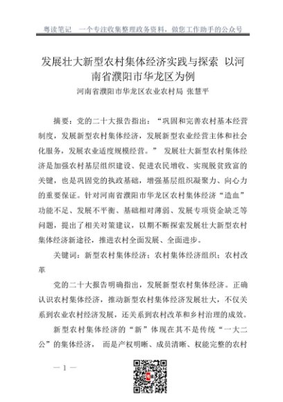 / 调研报告:20230200发展壮大新型农村集体经济实践与探索 以河南省濮阳市华龙区为例——农业农村局