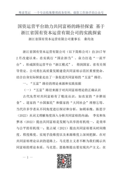 / 调研报告:20230300国资运营平台助力共同富裕的路径探索 基于浙江省国有资本运营有限公司的实践探索