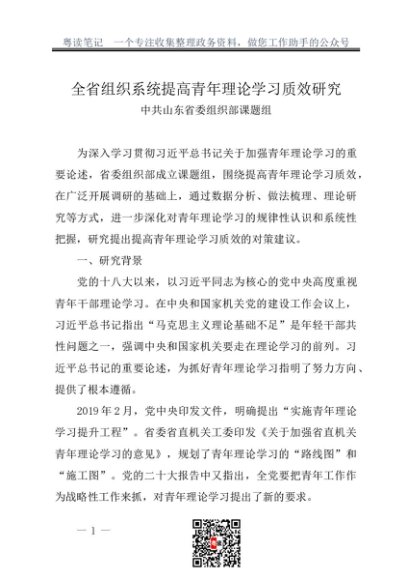 / 调研报告:20230200全省组织系统提高青年理论学习质效研究——山东省委组织部课题组