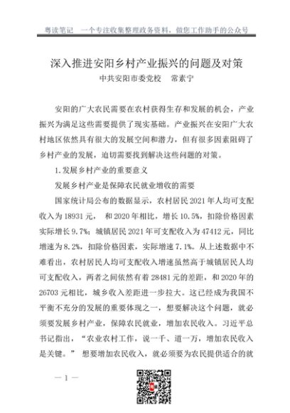 / 调研报告:20230300深入推进安阳乡村产业振兴的问题及对策