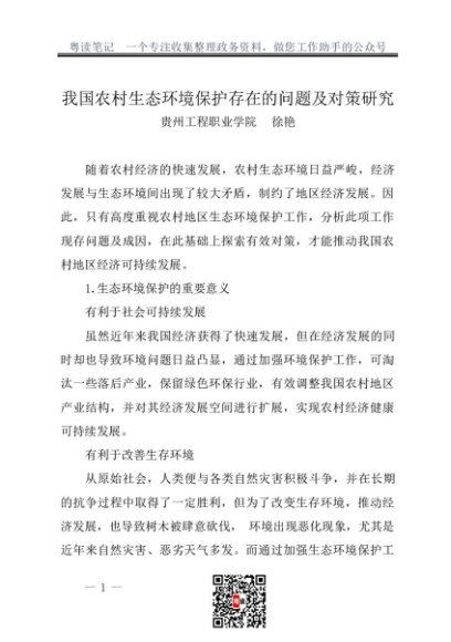 / 调研报告:20230300我国农村生态环境保护存在的问题及对策研究