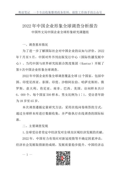 / 调研报告:20230400中国企业形象全球调查分析报告——中国外文局中国企业全球形象研究课题组