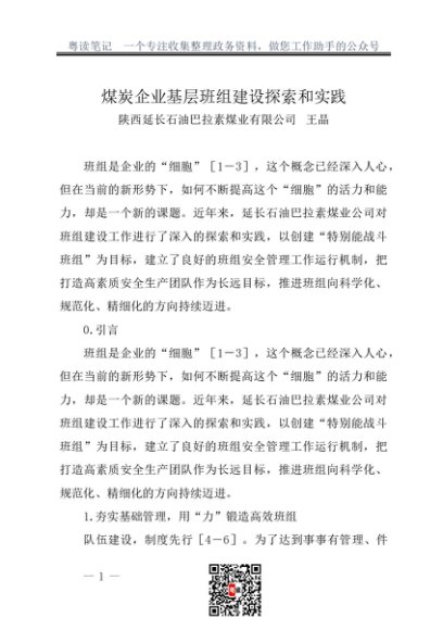 / 调研报告:20230200煤炭企业基层班组建设探索和实践
