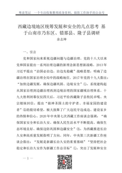 / 调研报告:20230200西藏边境地区统筹发展和安全的几点思考 基于山南市乃东区、错那县、隆子县调研