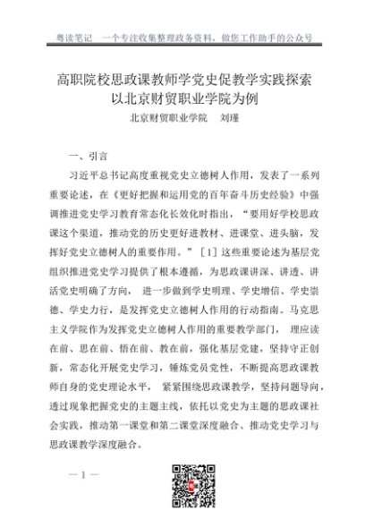 调研报告:20230100高职院校思政课教师学党史促教学实践探索 以北京财贸职业学院为例