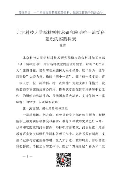 / 调研报告:20230200北京科技大学新材料技术研究院助推一流学科建设的实践探索