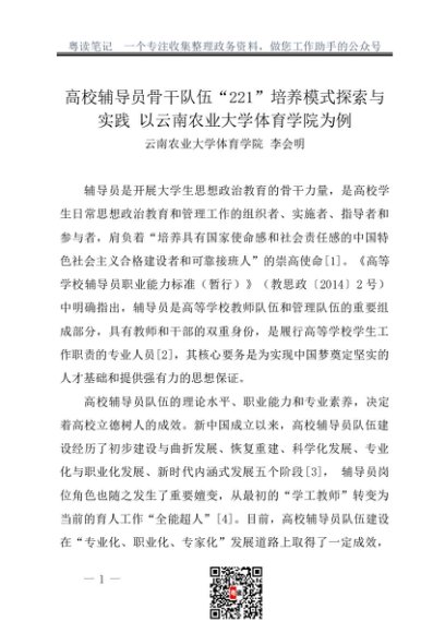 / 调研报告:20230200高校辅导员骨干队伍“221”培养模式探索与实践 以云南农业大学体育学院为例