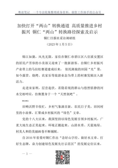 / 调研报告:20230105加快打开“两山”转换通道 高质量推进乡村振兴 铜仁“两山”转换路径探索及启示