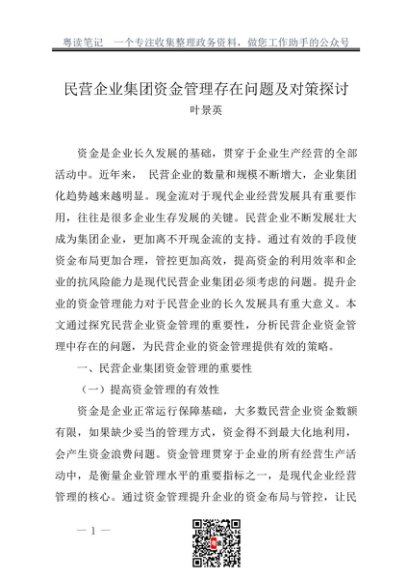 / 调研报告:20230100民营企业集团资金管理存在问题及对策探讨