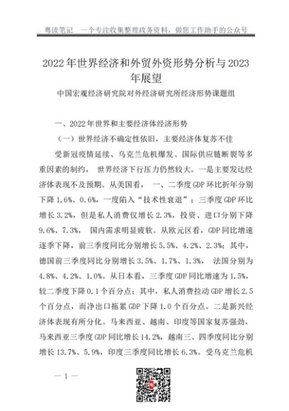 / 调研报告:20230100对2022年世界经济和外贸外资形势分析与2023年展望