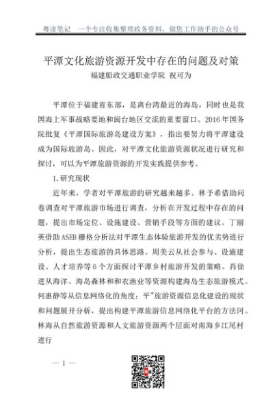 / 调研报告:20230100平潭文化旅游资源开发中存在的问题及对策