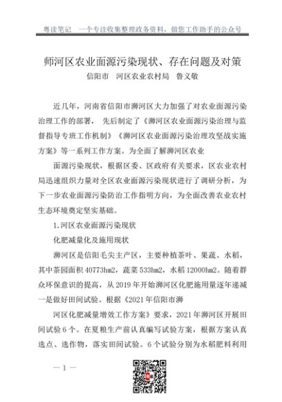 / 调研报告:20230100师河区农业面源污染现状、存在问题及对策