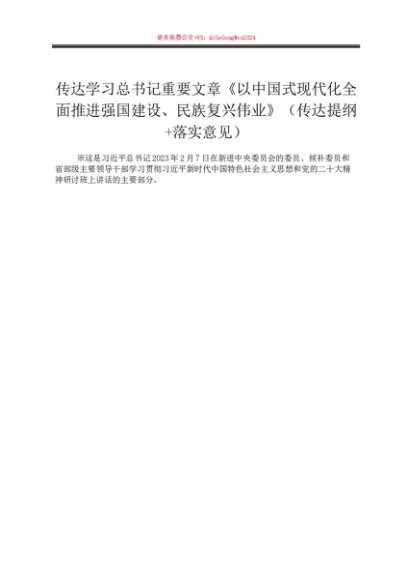 第一议题:20250101传达学习总书记重要文章《以中国式现代化全面推进强国建设、民族复兴伟业》(传达提纲+落实意见)