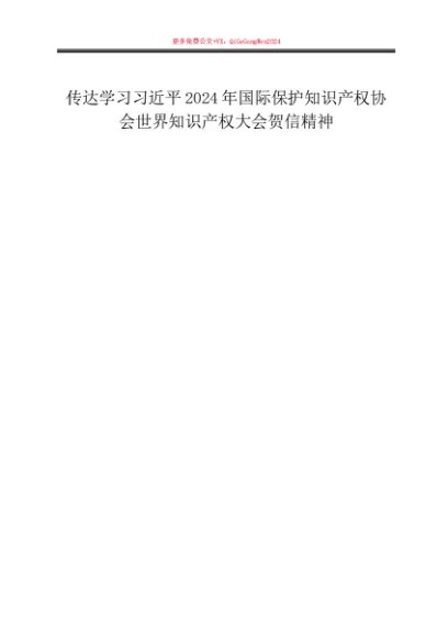 第一议题:20241019传达学习习近平2024年国际保护知识产权协会世界知识产权大会贺信精神(含贯彻落实意见)