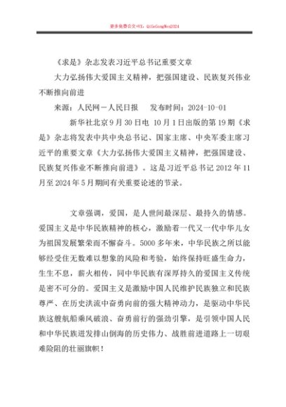 第一议题:20241001习近平文章:大力弘扬伟大爱国主义精神,把强国建设、民族复兴伟业不断推向前进