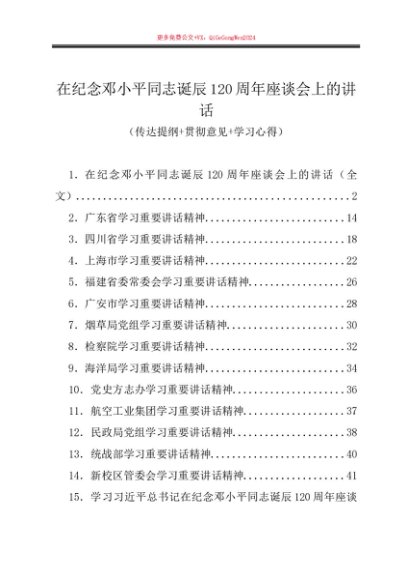 / 第一议题:20240822在纪念邓小平同志诞辰120周年座谈会上的讲话(传达提纲+贯彻意见+学习心得)