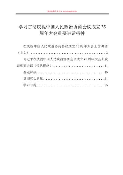 / 第一议题:20240920学习贯彻庆祝中国人民政治协商会议成立75周年大会重要讲话精神(传达提纲+贯彻意见+学习心得)