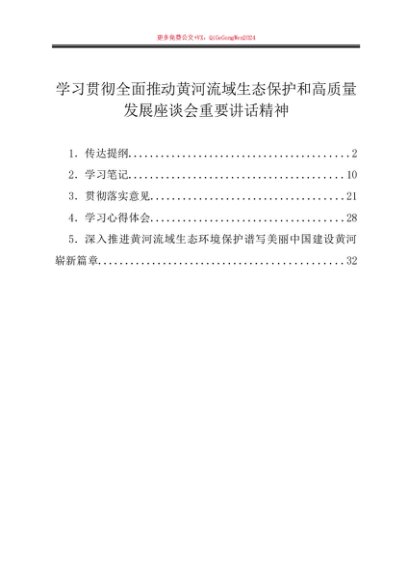 第一议题:20240912学习贯彻习近平在全面推动黄河流域生态保护和高质量发展座谈会上的重要讲话精神(传达提纲+贯彻意见+学习心得)