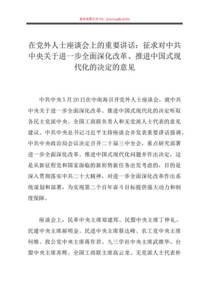 / 第一议题:20240719在党外人士座谈会上的重要讲话:征求对中共中央关于进一步全面深化改革、推进中国式现代化的决定的意见