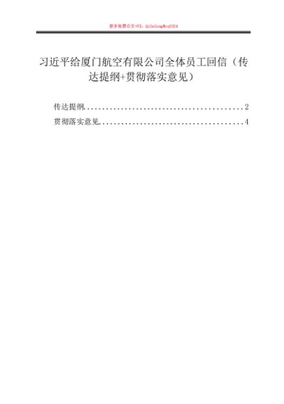 / 第一议题:20240724给厦门航空有限公司全体员工回信(传达提纲+贯彻落实意见)