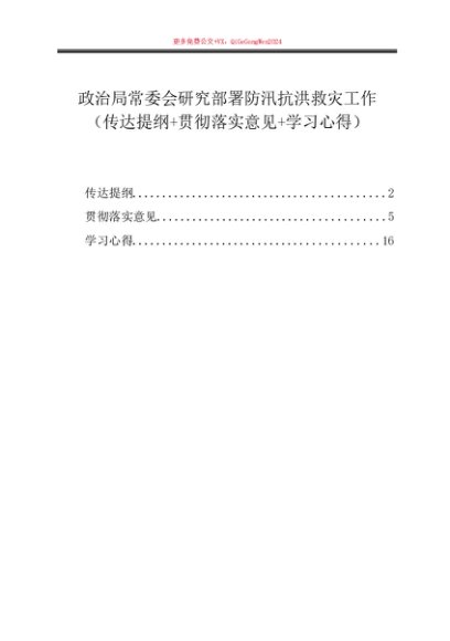 第一议题:20240725政治局常委会研究部署防汛抗洪救灾工作(传达提纲+贯彻落实意见+心得体会)