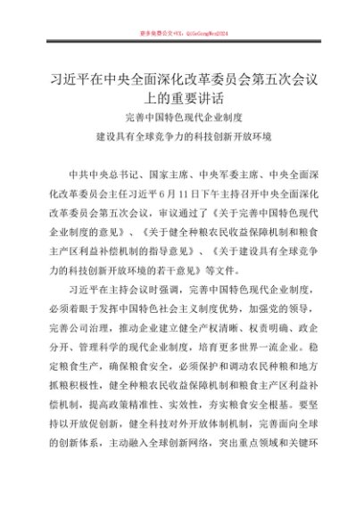 / 第一议题:20240611习近平在中央全面深化改革委员会第五次会议上的重要讲话