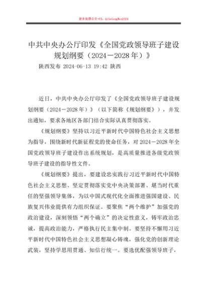 第一议题:20240613中共中央办公厅印发《全国党政领导班子建设规划纲要(2024-2028年)》及解读