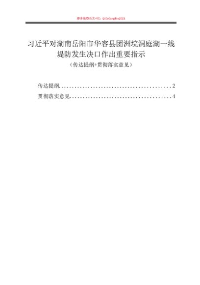 第一议题:20240705习近平对湖南岳阳市华容县团洲垸洞庭湖一线堤防发生决口作出重要指示(传达提纲+贯彻落实意见)