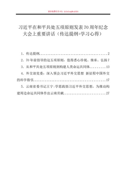 / 第一议题:20240628习近平在和平共处五项原则发表70周年纪念大会上重要讲话(传达提纲+学习心得)