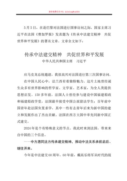 / 第一议题:20240505《传承中法建交精神 共促世界和平发展》