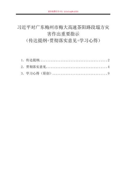 / 第一议题:20240503习近平对广东梅州市梅大高速茶阳路段塌方灾害作出重要指示(传达提纲+贯彻落实意见+学习心得)