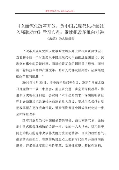 第一议题:20240516《全面深化改革开放,为中国式现代化持续注入强劲动力》学习心得:继续把改革推向前进——《求是》杂志编辑部