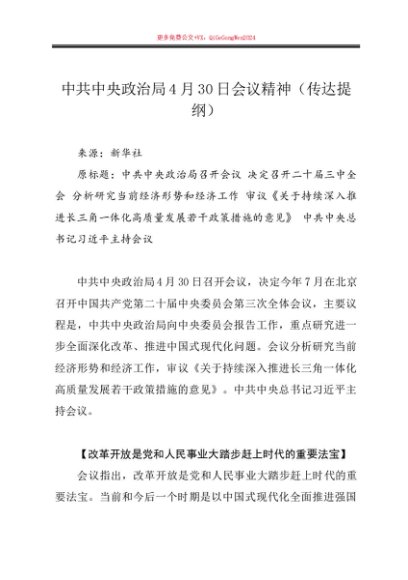 / 第一议题:20240430中共中央政治局4月30日会议精神(传达提纲)