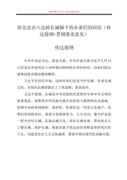 第一议题:20240514给北京市八达岭长城脚下的乡亲们的回信(传达提纲+贯彻落实意见)