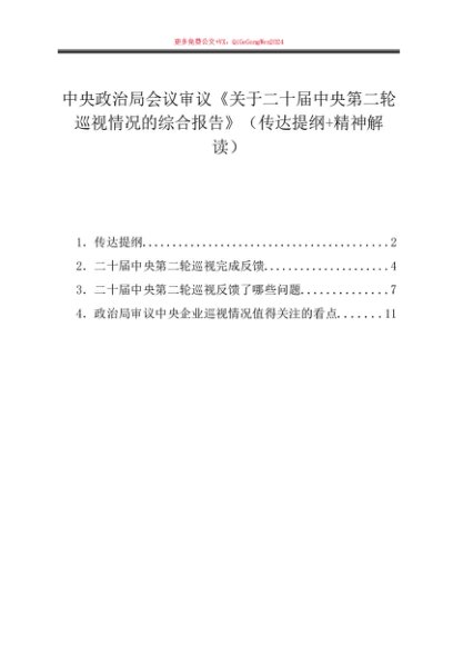 / 第一议题:20240329中央政治局会议审议《关于二十届中央第二轮巡视情况的综合报告》(传达提纲+精神解读)