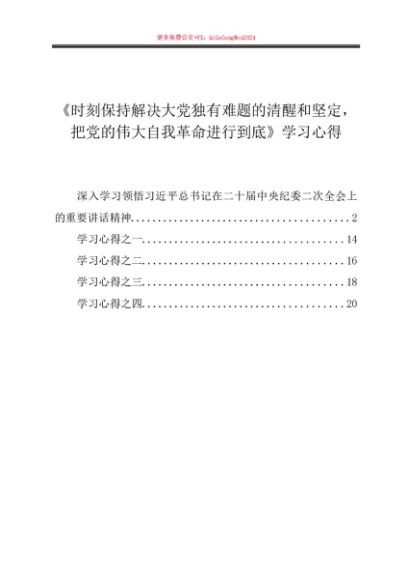 / 第一议题:20240316《时刻保持解决大党独有难题的清醒和坚定,把党的伟大自我革命进行到底》学习心得5篇