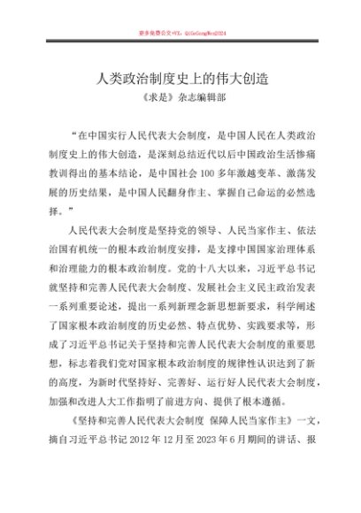 第一议题:20240218《坚持和完善人民代表大会制度 保障人民当家作主》学习文章——《求是》杂志编辑部