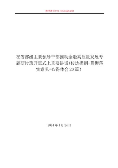 第一议题:20240124在省部级主要领导干部推动金融高质量发展专题研讨班开班式上重要讲话(传达提纲+贯彻落实意见+心得体会20篇)
