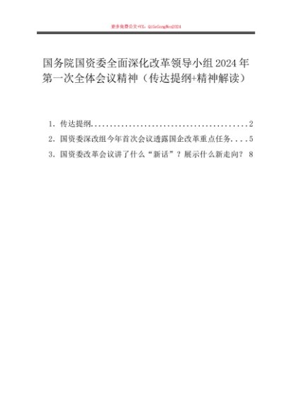 / 第一议题:20240329国务院国资委全面深化改革领导小组2024年第一次全体会议精神(传达提纲+精神解读)