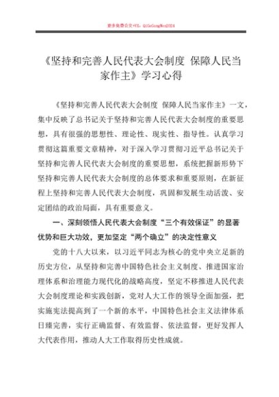 / 第一议题:20240218《坚持和完善人民代表大会制度 保障人民当家作主》学习心得