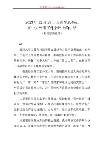 / 第一议题:20231229习近平总书记在中央外事工作会议上的讲话(贯彻落实意见)