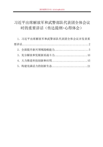 / 第一议题:20240309在解放军和武警部队代表团全体会议上的重要讲话(传达提纲+心得体会)
