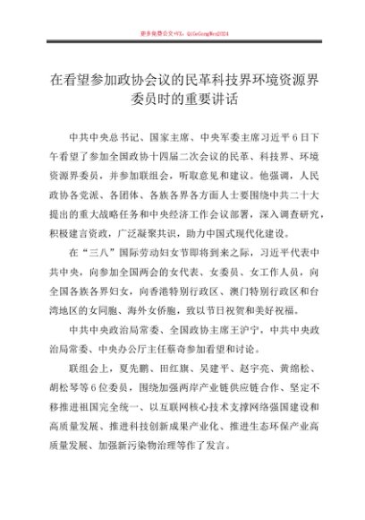 第一议题:20240306在看望参加政协会议的民革科技界环境资源界委员时的重要讲话