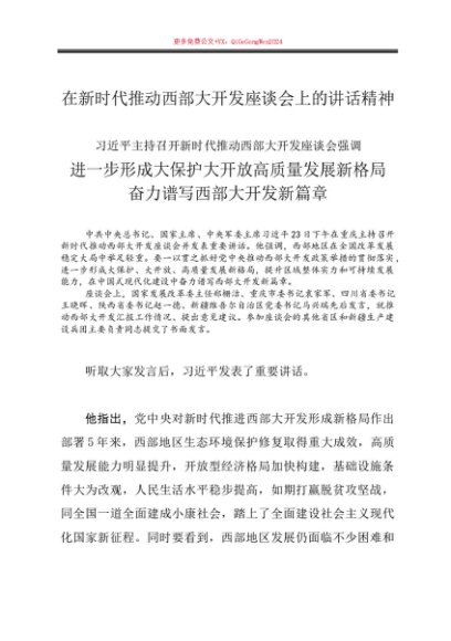 / 第一议题:20240423在新时代推动西部大开发座谈会上的讲话精神(传达提纲)