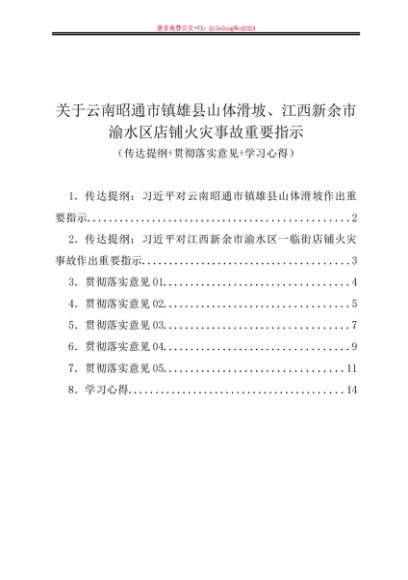 / 第一议题:20240124关于云南昭通市镇雄县山体滑坡、江西新余市渝水区店铺火灾事故重要指示(传达提纲+落实意见+学习心得)