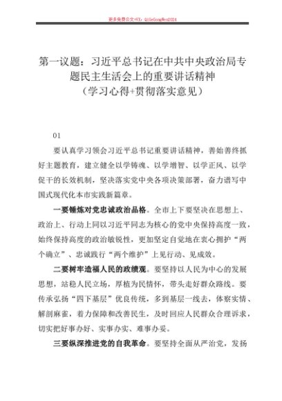 / 第一议题:20231227习近平总书记在中共中央政治局专题民主生活会上的重要讲话精神(学习心得+贯彻落实意见)8篇