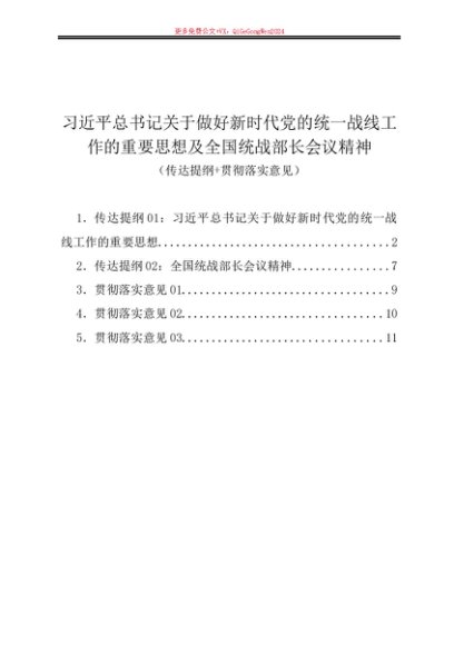 / 第一议题:20240123全国统战部长会议精神及关于党的统战工作重要思想(传达提纲+落实意见)