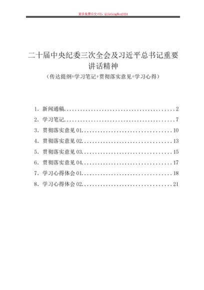 / 第一议题:20240108二十届中央纪委三次全会及习近平总书记重要讲话精神(传达提纲+落实意见+学习心得)