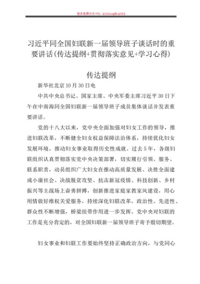 / 第一议题:20231030习近平同全国妇联新一届领导班子谈话时的重要讲话(传达提纲+贯彻落实意见+学习心得)
