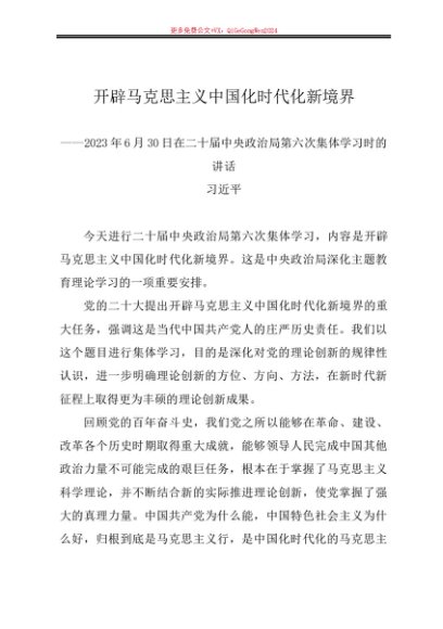 第一议题:20230630开辟马克思主义中国化时代化新境界——在二十届中央政治局第六次集体学习时的讲话